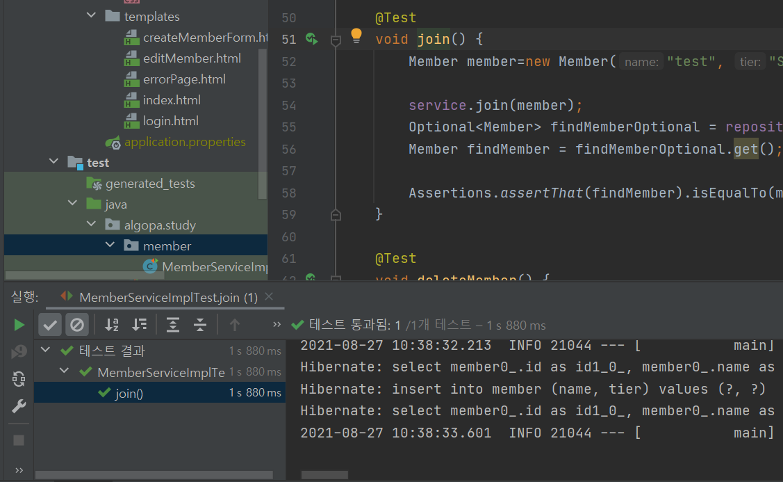 join 기능이 잘 성공했음을 TDD로 확인할 수 있으며,