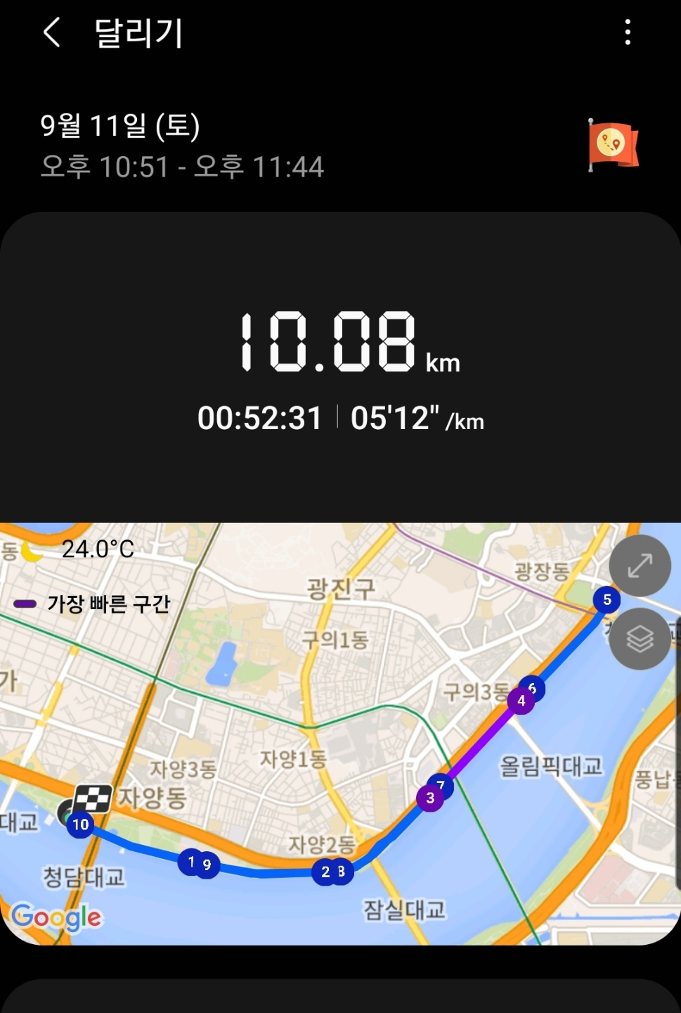 원래 9월 극초에 하려 했으나, 귀차니즘과 컨디션 때문에 9월 11일에 장거리 달리기를 진행하였다.