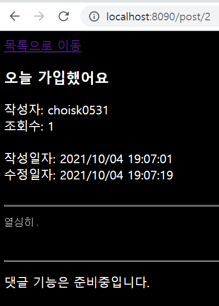3번 방법을 택하면서 든 생각은, 비슷한 프로젝트를 이후에 리액트 + 스프링부트로 다시 한 번 만들어보고 싶다는 생각이 절실하게 들었다.
