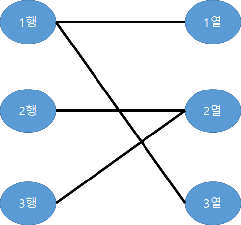 여기서 돌멩이는 행-열을 연결하는 간선을 의미한다고 생각할 수 있다.