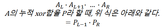수열 중 구간 [L, R]에 해당하는 부분수열의 xor합은 아래와 같다.