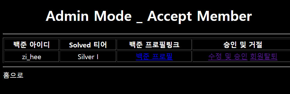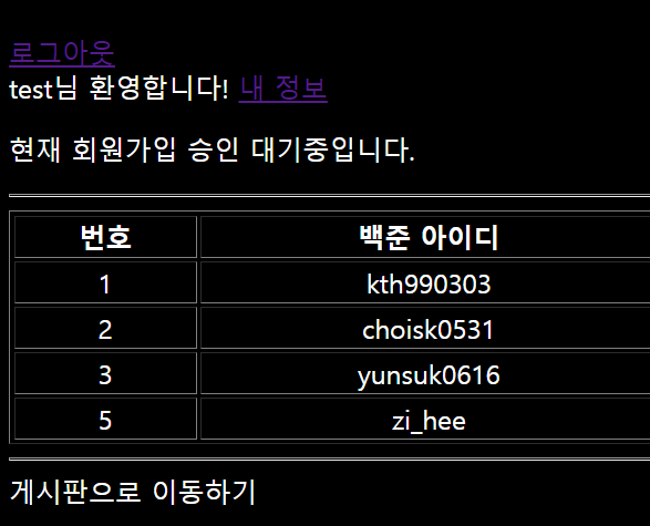 zi_hee님이 회원가입 승인을 대기중인 걸 확인할 수 있다.