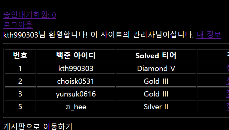 참고로 나 (kth990303)는 관리자이기 때문에 예외를 두었다.