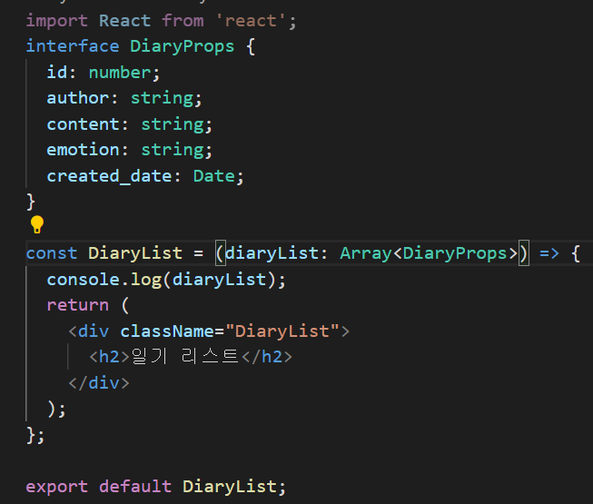 따라서 자식 props는 Array<DiaryProps>로 처리해주었고,