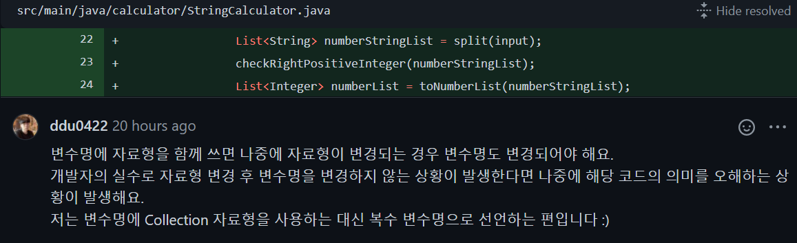 numberStringList, numberList와 같이 변수명에 자료형이 언급되는 경우,