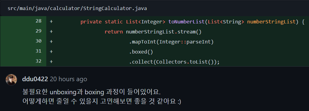조금 공부해보니, 위 코드는 stream에서 primitive type인 int로 unboxing해주다가, 다시 Integer로 boxing해버리고 List로 묶어버린 것이었는데, 그럴 필요가 없었다.
