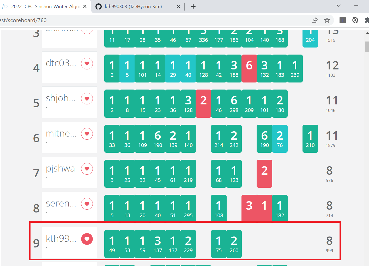 이렇게 16시까지 대회를 응시했고, 16시 이후엔 개인사정으로 풀지 않았지만, 풀었어도 AC받은 문제 수는 동일했을 것 같다.