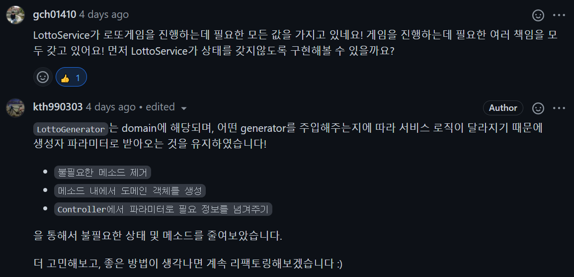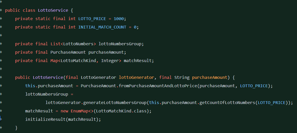 LottoService 클래스의 상태도 적지 않아 초기화 또한 굉장히 많이 진행해주고 있는 모습이다.
