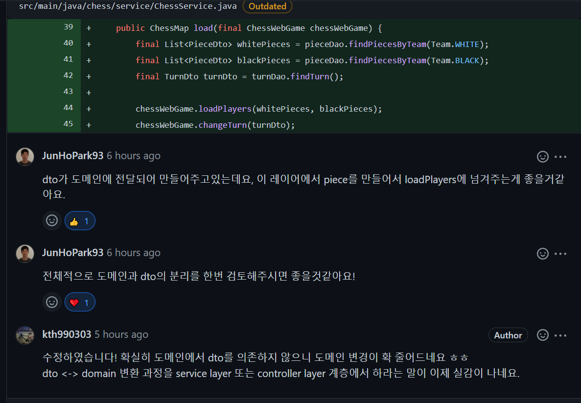 그렇게 pr을 보내고 나니, 리뷰어 제이에게 아래와 같은 피드백을 받았다.