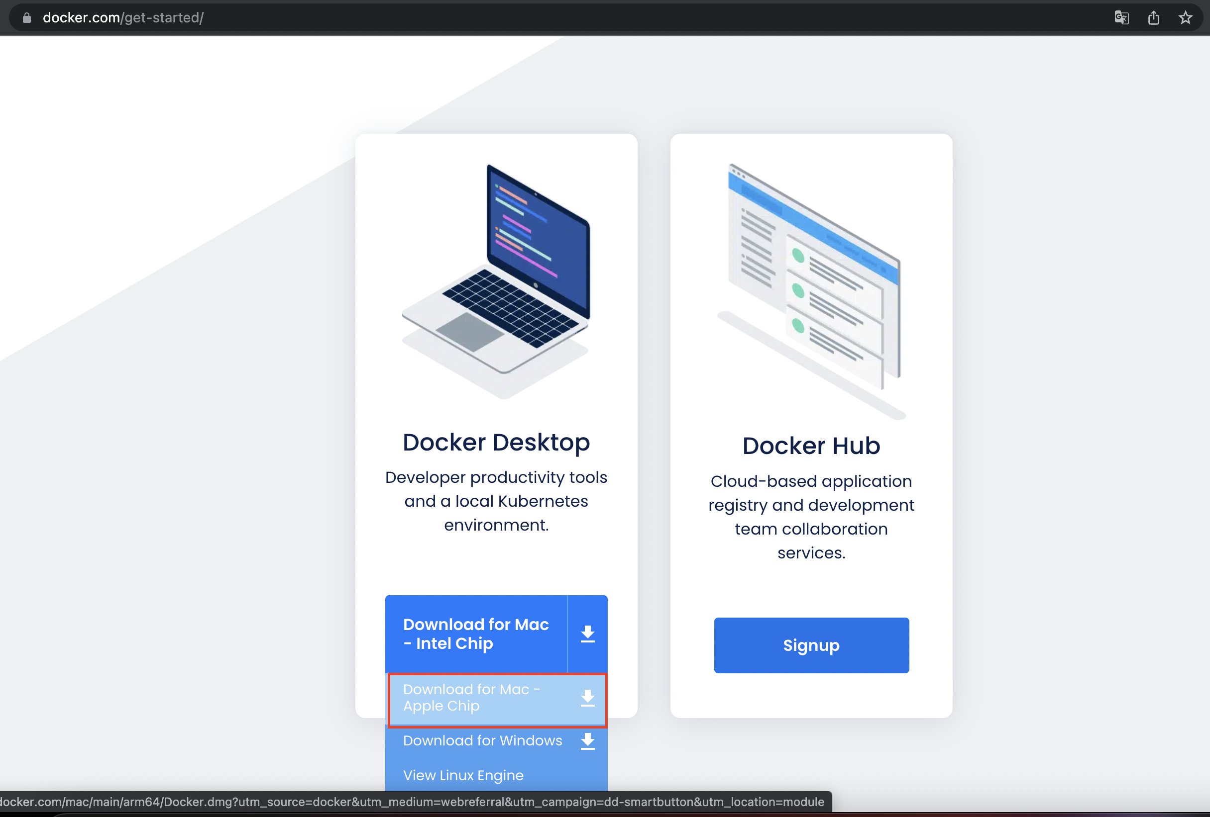 나는 맥북 m1을 이용중이었기 때문에 빨간 박스로 칠한 부분을 클릭해주었다.