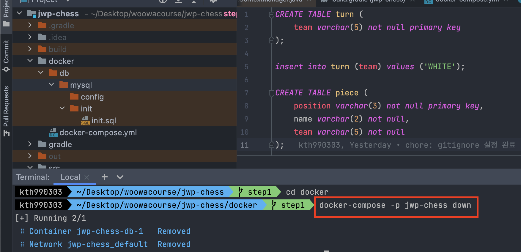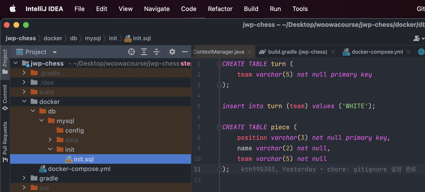 init.sql을 만들어주었다면, 이제 테이블들을 생성하고 애플리케이션을 실행시키기 위해 도커 컨테이너로 등록시켜주자.