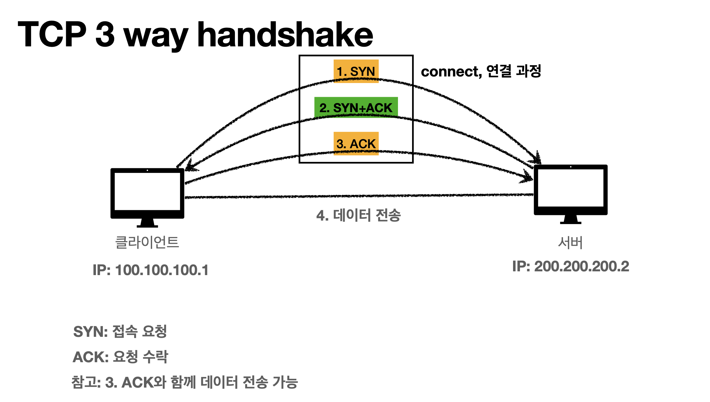 위와 같이 연결이 완료된 이후에야 데이터를 서로 주고받게 된다.