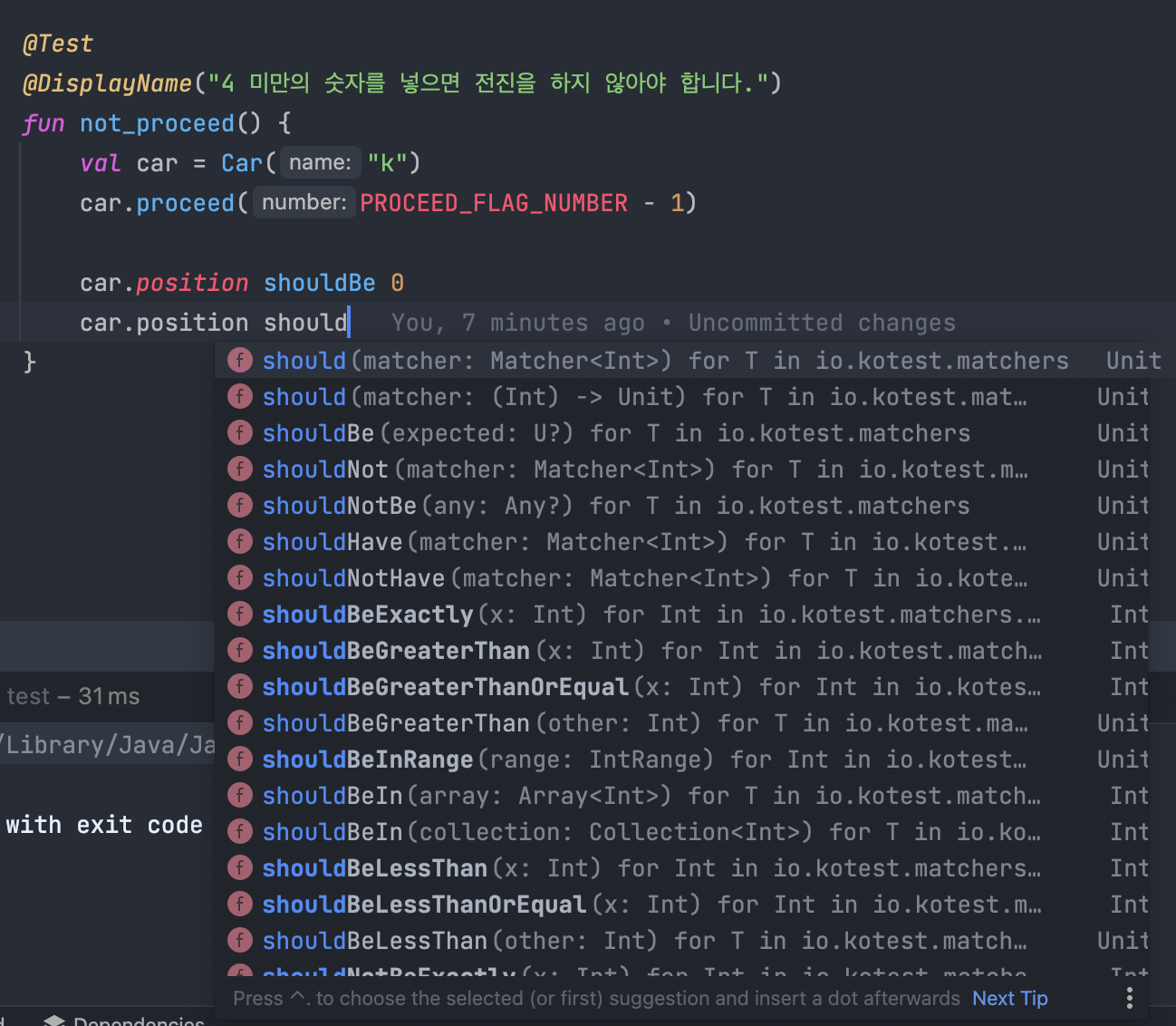 이러한 단점을 kotest를 사용하면 보완할 수 있다고 한다.