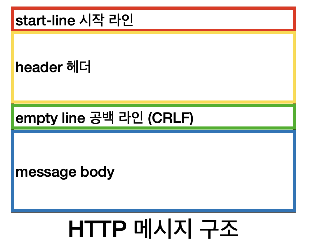 메시지 구조의 공통점으로 start-line, header, body로 이루어져있다.