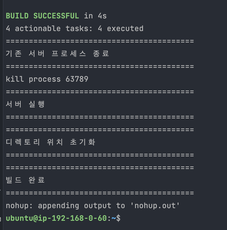 만약 의도대로 돌아가지 않는다면 아래 명령어를 통해 nohup.out을 확인하여 어떤 에러가 발생했는지 확인해보자.