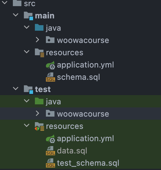 테스트에서는 매번 drop table if exists를 해주지만, main에서의 schema.sql에서 drop table을 해줄 경우에 배포할 때마다 데이터들이 리셋되므로 정말 큰일나게 된다. 이렇게 테스트 때와 실제 실행에서의 schema.sql을 다르게 해주고 싶다면 어떻게 해야 할까?