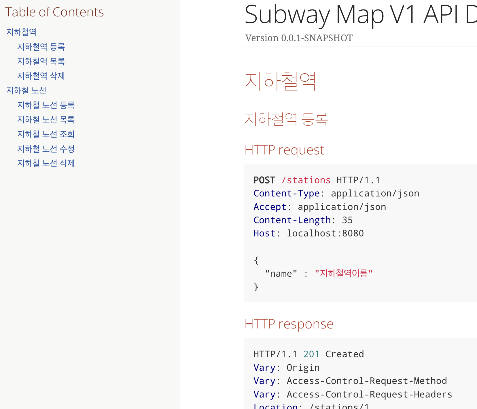 각 api마다 간편하게 이동할 수 있도록 링크를 달아주는 기능이다. Table of Contents 에서 `지하철 노선 등록`을 클릭하면, 해당 api로 바로 이동시켜 빠르고 편리하게 볼 수 있게 해준다. 웬만해선 달아주자.