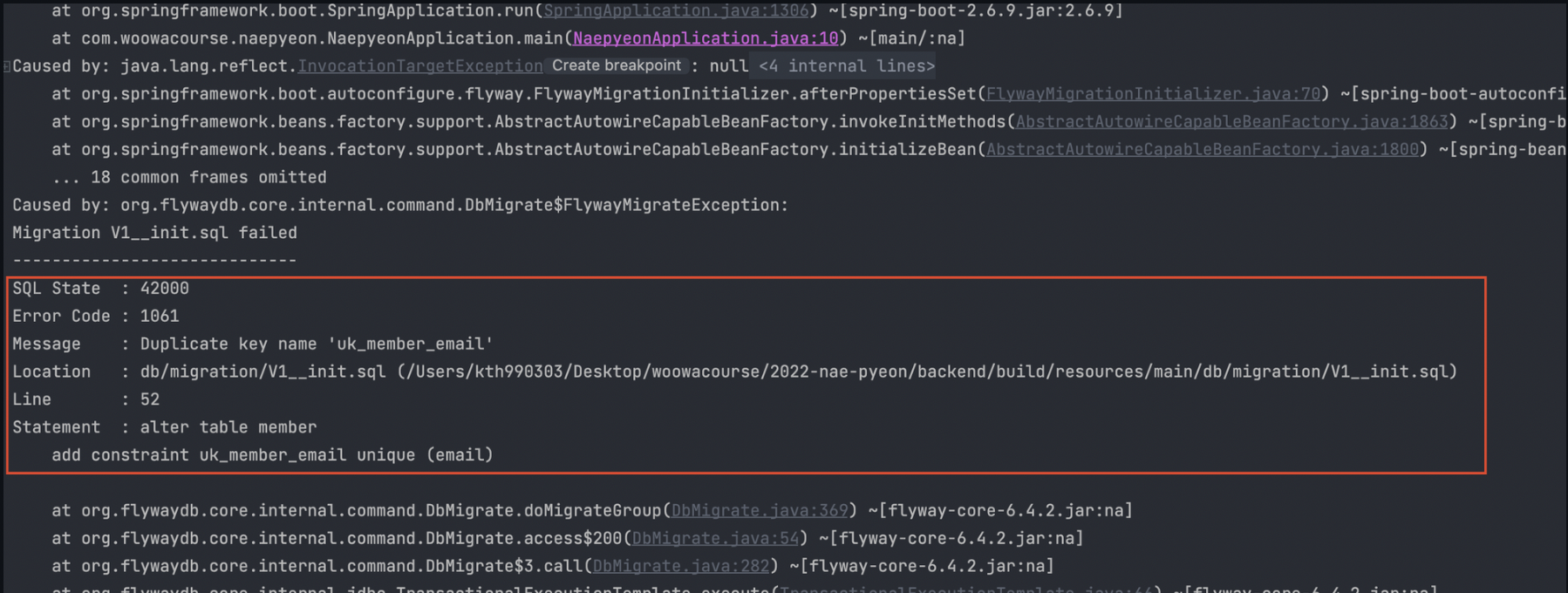 - 로컬DB인 경우 다른 테이블, 혹은 flyway_schema_history 를 삭제 후 다시 실행해보자