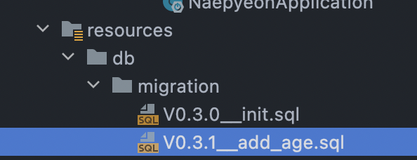 따라서 db/migration 디렉토리에 새로운 스크립트를 추가해주었다.