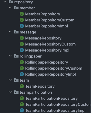 Spring Data JPA의 기능과 queryDSL을 적용한 인터페이스를 모두 사용하기 위해 아래의 구조를 채택했다.
