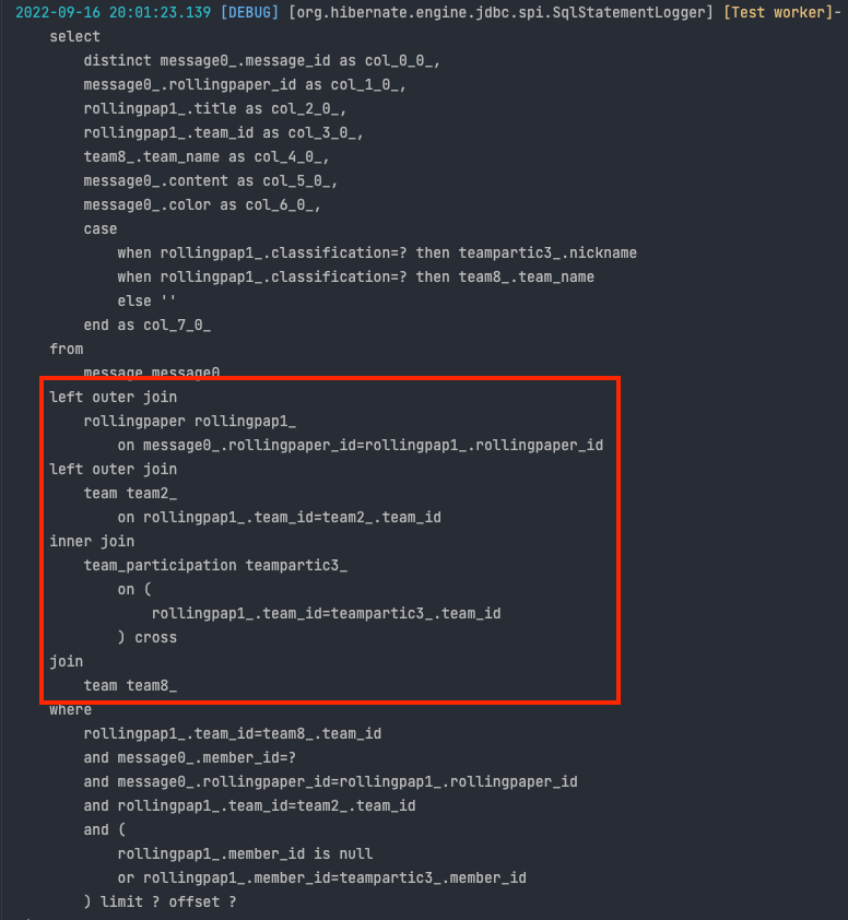 .or(message.rollingpaper.member.id.eq(teamParticipation.member.id))