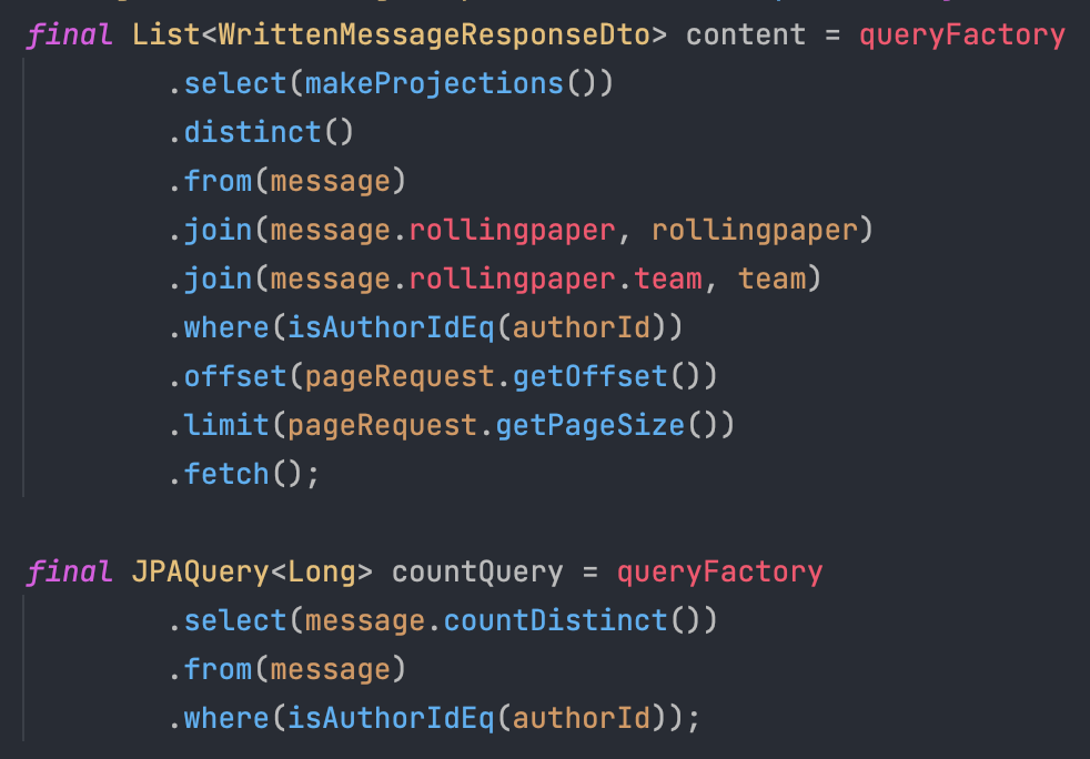 분명 select 관련 쿼리들은 훨씬 편리해지고 가독성도 나아진 것을 확인할 수 있다.