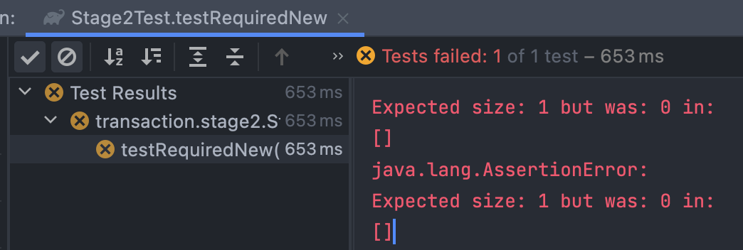 만약 정말 독립적으로 로직이 수행된다면 합류 메서드에 예외가 터져 REQUIRES_NEW 자식 트랜잭션이 롤백될 때, REQUIRED 부모 트랜잭션은 롤백되지 않아야 한다. 하지만 실제 결과는 합류 메서드에 예외가 터져 REQUIRES_NEW 자식 트랜잭션이 롤백되면 REQUIRED 부모 트랜잭션도 롤백이 발생한다.