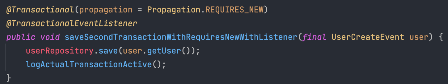 주의할 점은, 위의 메서드처럼 @TransactionalEventListener로 실행할 트랜잭션에서 insert, update, delete 연산을 수행할 경우 전파레벨을 REQUIRES_NEW로 걸어주어야 한다.