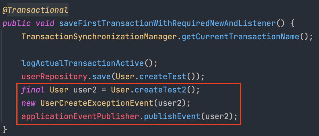@TransactionalEventListener를 이용하기 위해 ApplicationEventPublisher를 이용하여 이벤트를 저장시켜놓을 수 있도록 하자.