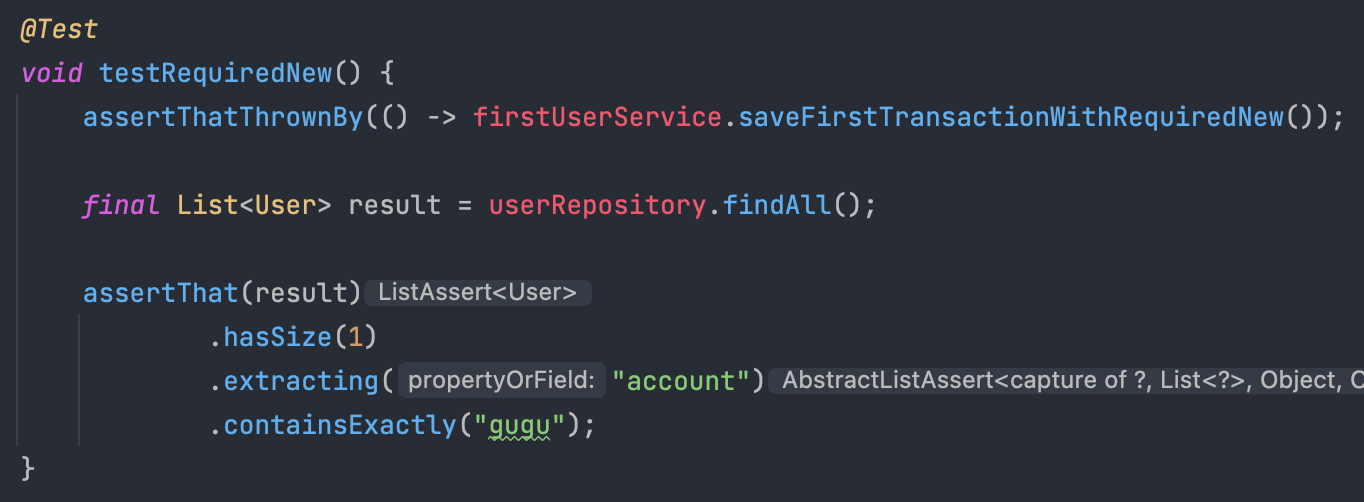 - 자식 메서드에 예외가 터져 트랜잭션이 롤백돼도, 부모 트랜잭션은 커밋된 상태여야 한다. (부모 트랜잭션은 이미 커밋됐기 때문이다.)