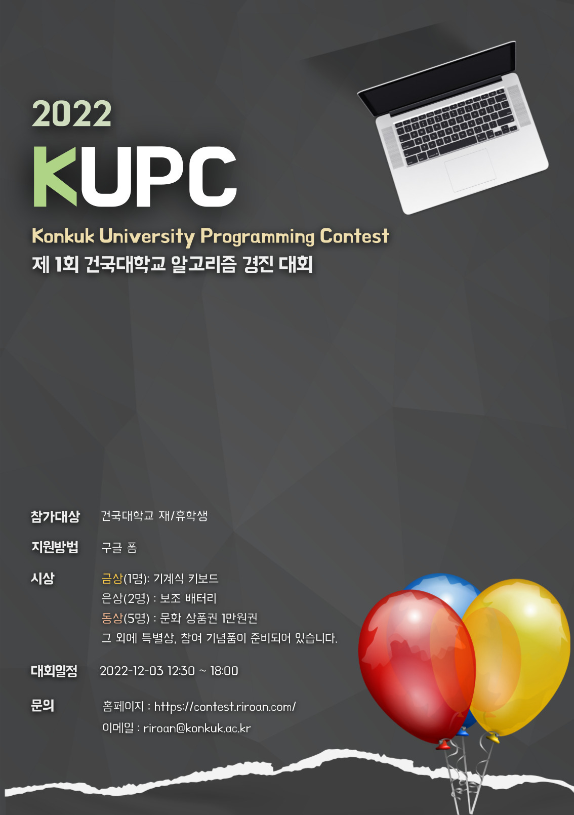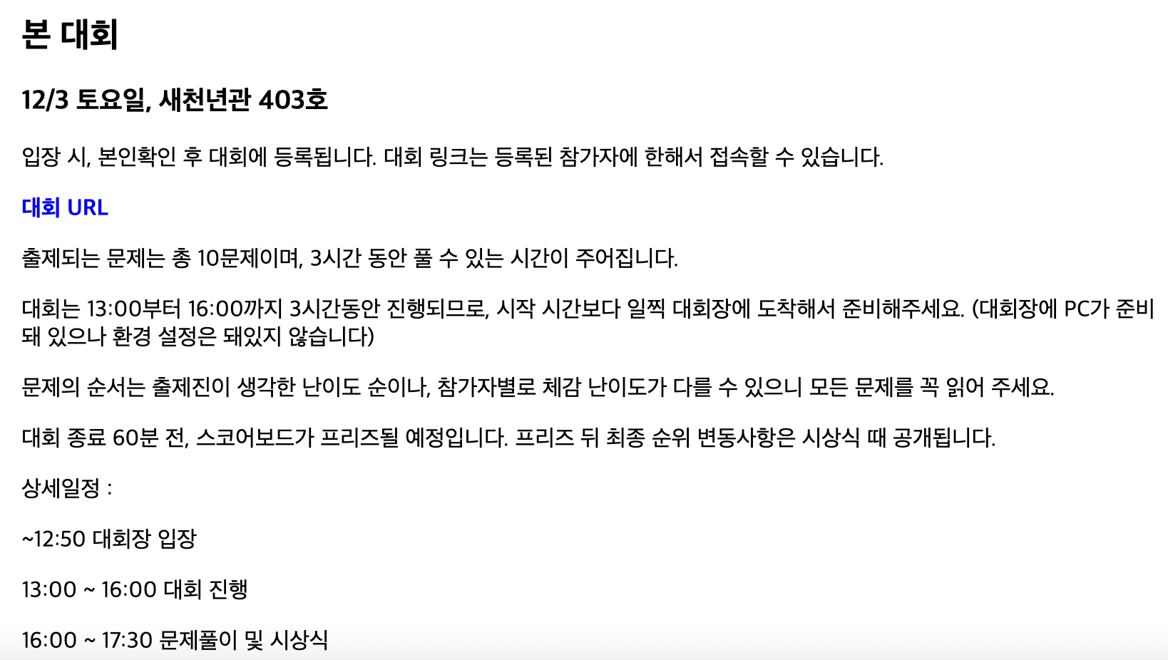 본 대회는 12월 3일 토요일 12시 50분 ~ 17시 30분까지 오프라인으로 진행했다!