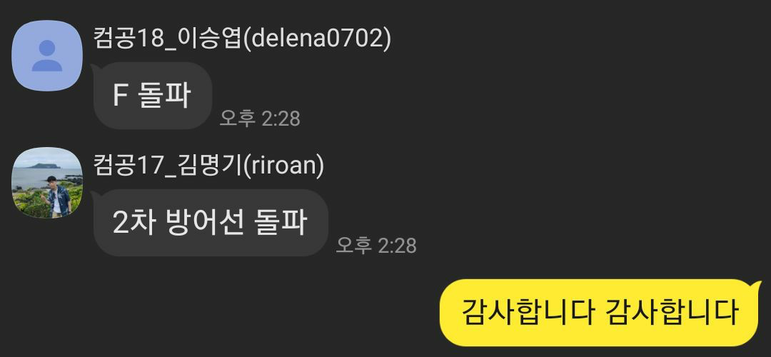 실제로 F번 첫 정답자가 나왔을 때 너무나도 감격스러웠다ㅋㅋㅋ