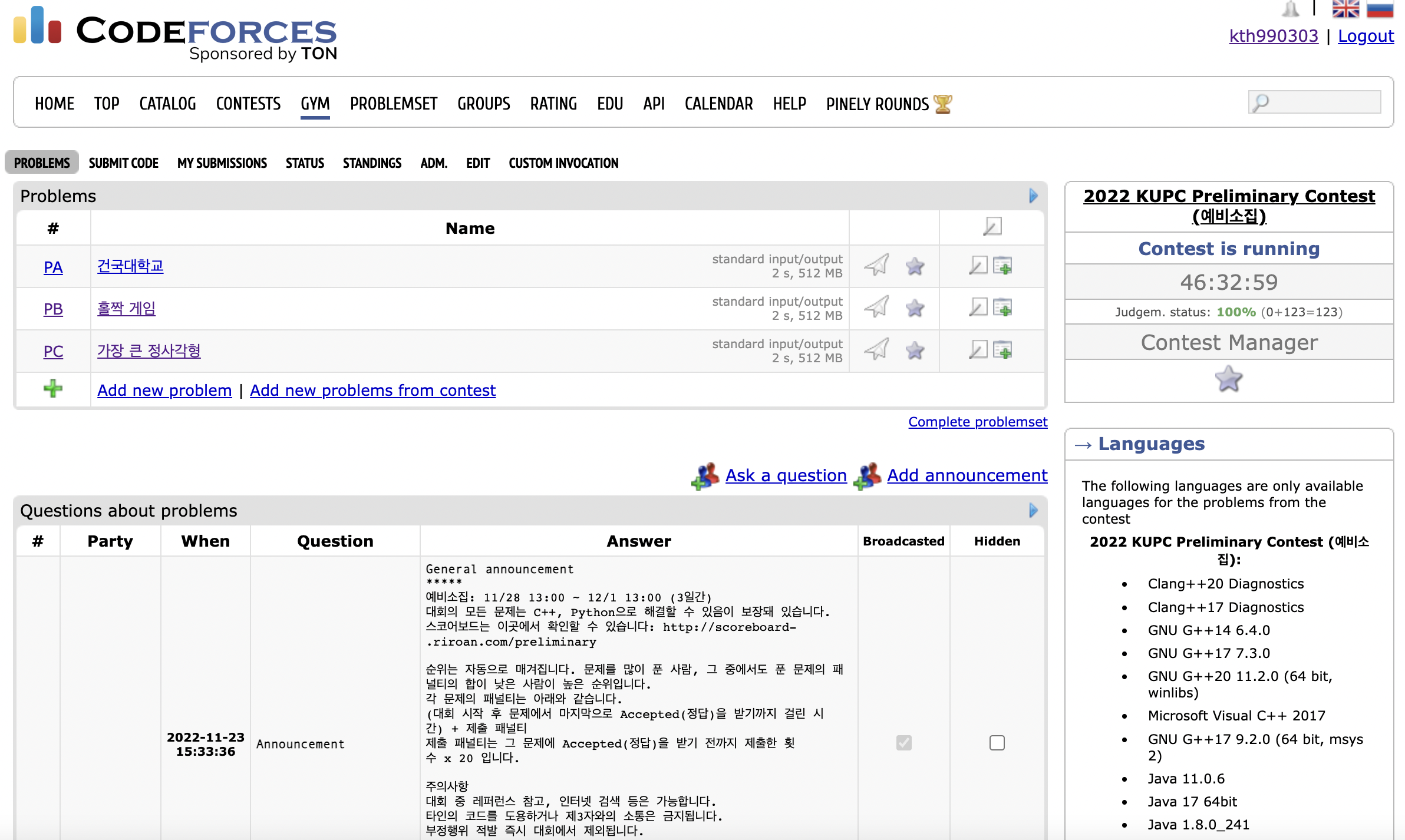 KUPC 2023부터는 백준에서도 열릴 수 있었음 좋겠다.