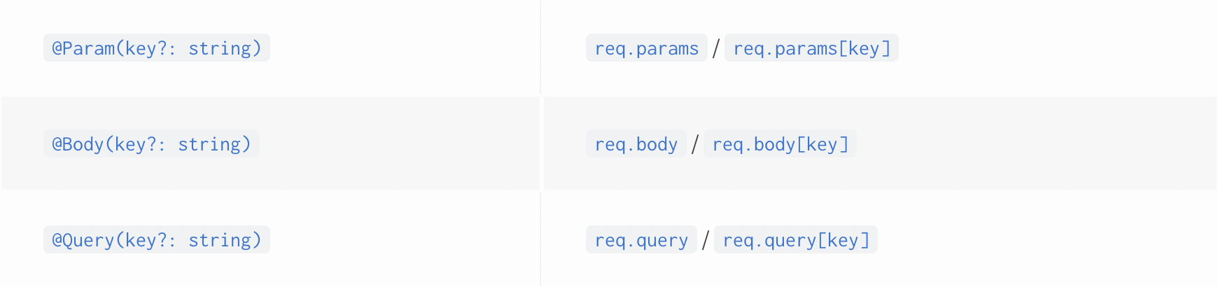 참고로 쿼리파람(query parameter)을 사용하고 싶으면 @Query 데코레이터를 사용하면 된다.