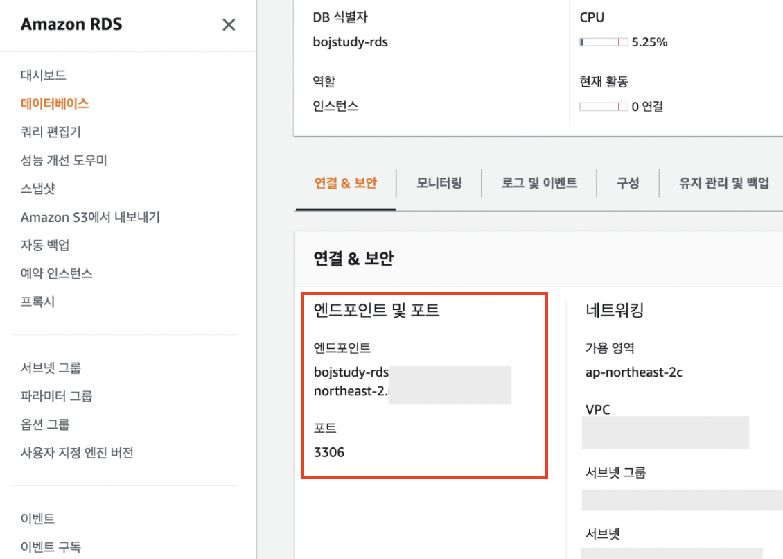 datasource url이 엔드포인트와 포트로 구성되기 때문이다.