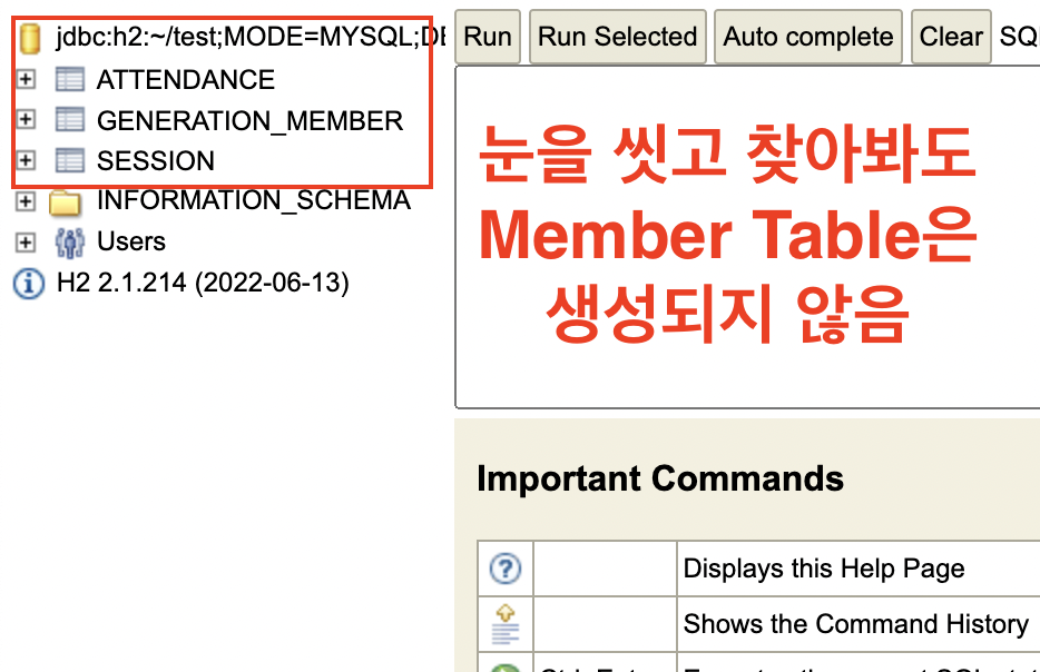JdbcSQLSyntaxErrorException: Table "MEMBER" not found인 상황이다.