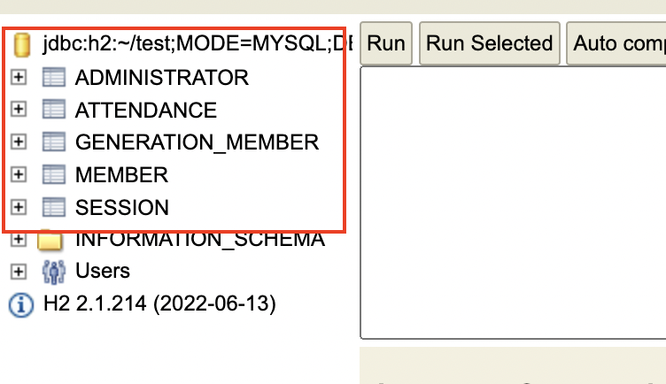 자, h2-console에 연결했다면 왼쪽에서 테이블 생성 여부를 확인해보자.