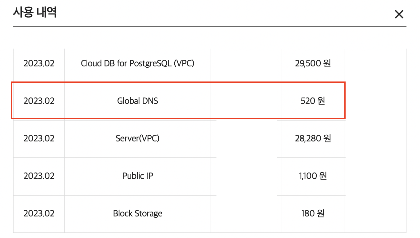 DNS query 횟수 비용이 무료임에도 불구하고 NCP보다는 AWS가 좀 더 비싼 것이다.
