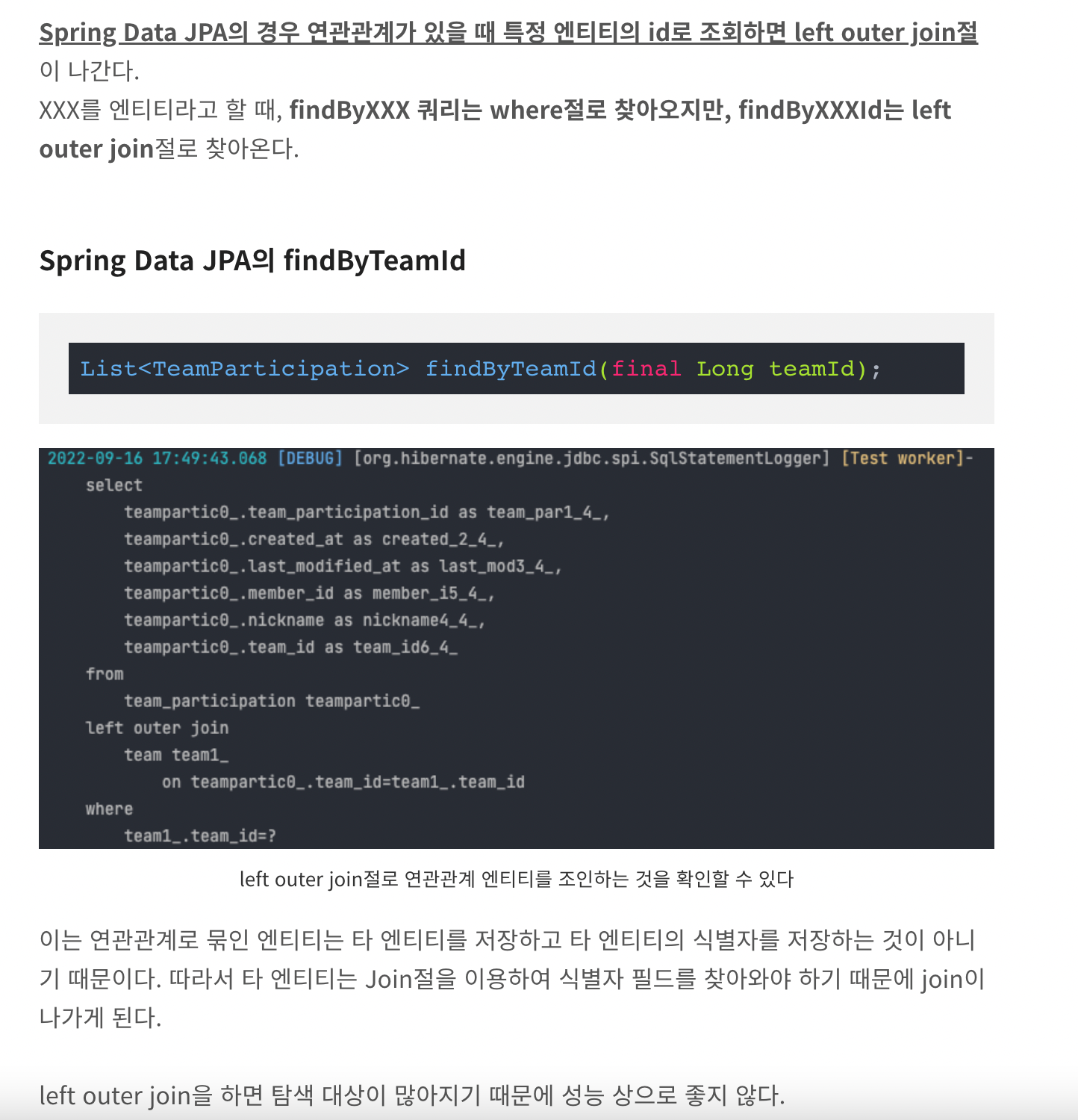 Spring Data JPA의 불필요한 left outer join절 발생에 대해서는 제 블로그 내용을 캡처하여 대체하겠습니다.