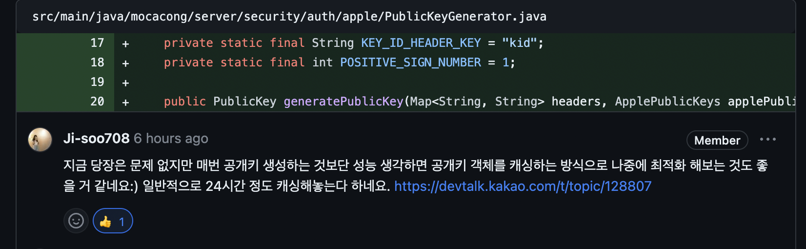 실제로 관련 코드리뷰도 받았습니다.