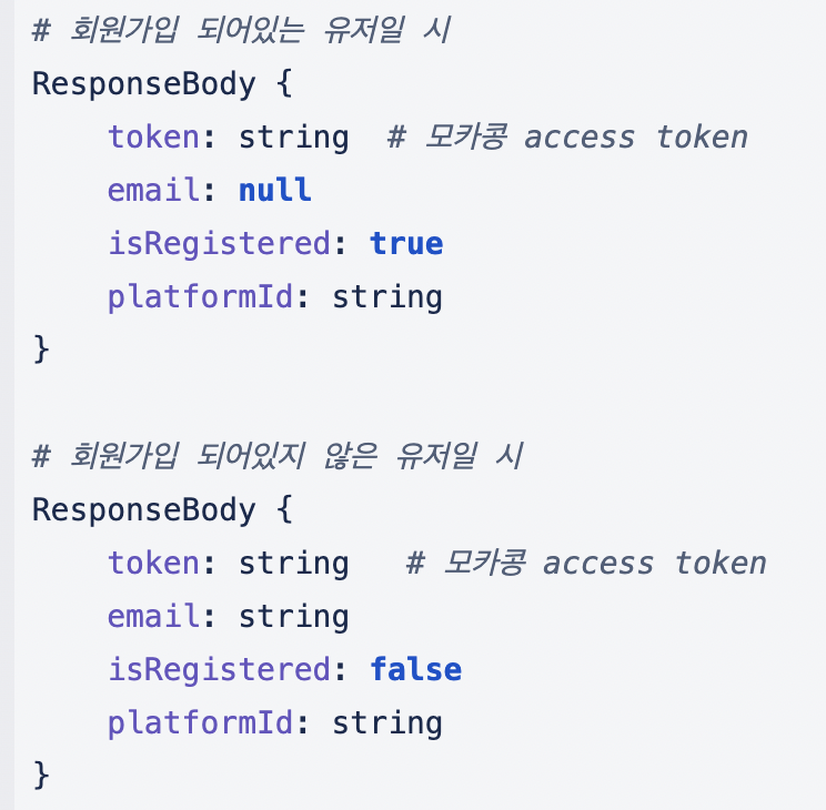 그렇기 때문에 회원가입이 돼있는 유저인지, 돼있지 않은 유저인지에 따라 api의 response가 조금 달라지게 되는데요.