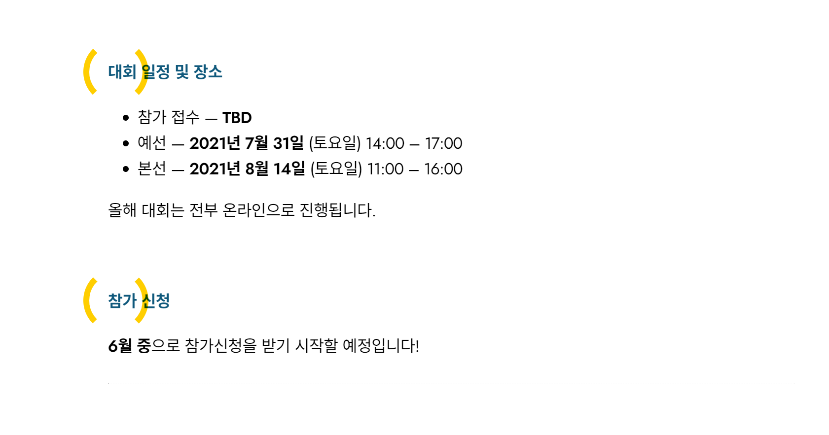 이왕이면 우리 모두 이번 대회 준비로 더 좋은 실력을 향해 한발짝 나아가 본선 진출까지 쾌거를 이뤄냈으면 좋겠다.