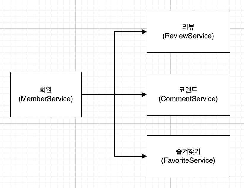 그런데 탈퇴 로직 하나때문에 MemberService에서 위와 같이 의존성들이 추가되면, 이후에 변경의 여파나 의존성 파악의 어려움을 동반하는 스파게티 코드가 될 것이 불보듯 뻔했다.