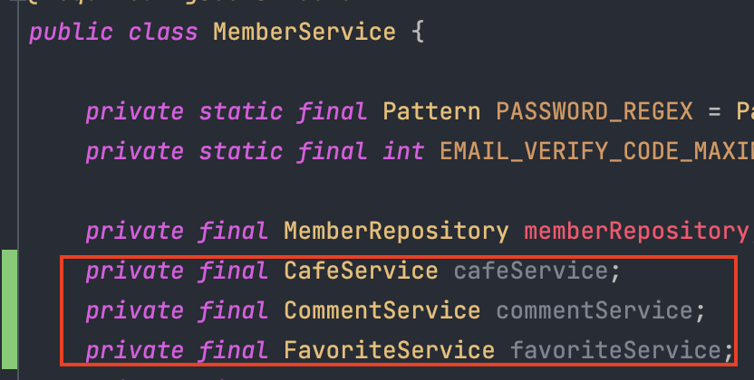 (이미 해당 프로젝트의 핵심 비즈니스 객체인 CafeService에서 수많은 의존성을 가지고 있기 때문에... 더 이상 의존성 스파게티는 진짜 안된다)