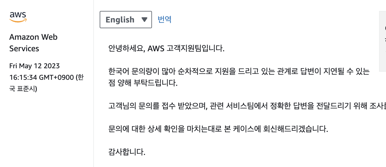 마침 4/25에 AWS 한국어 문의 지원이 가능하다는 기사도 떴었다.