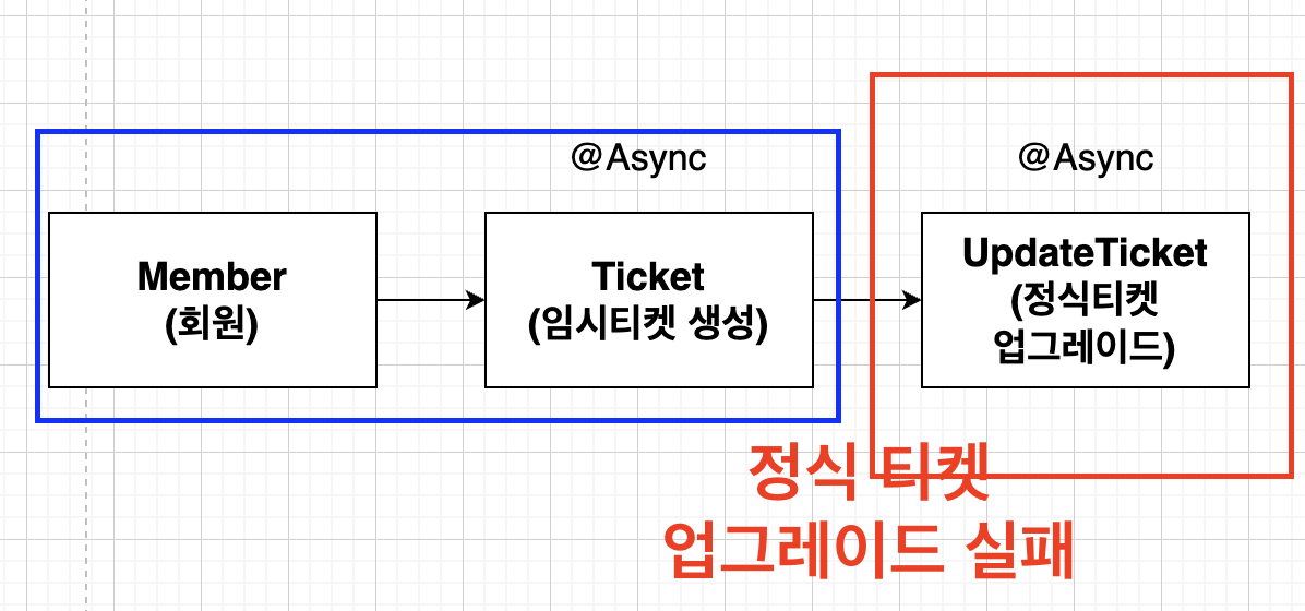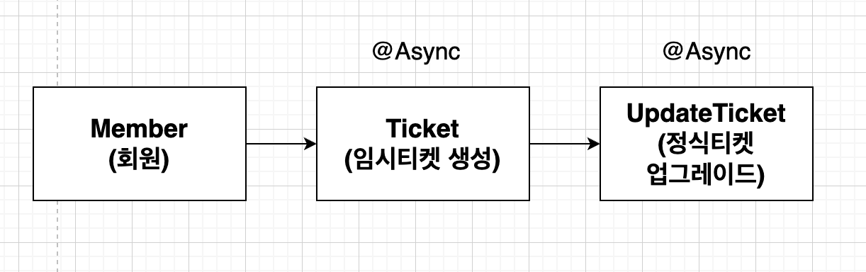 그리고 각각의 로직은 모두 @Async로 작동하며, 임시티켓 생성 로직에서 비동기로 정식 티켓 업글 로직을 호출한다.