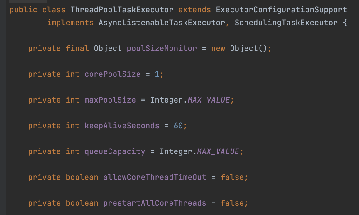 비동기 로직은 ThreadPoolTaskExecutor 에서 생성한 스레드에서 수행된다. 따라서 ThreadPoolTaskExecutor 관련 설정 및 Graceful Shutdown 쪽 코드를 살펴보면서 원인을 파악해보았다.