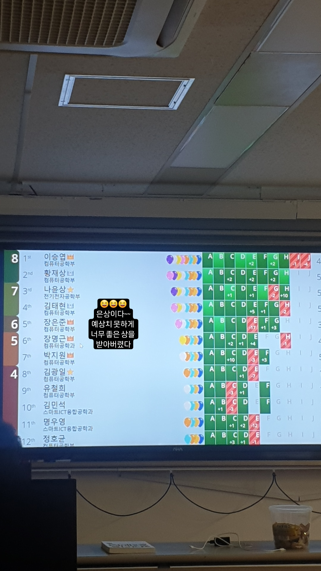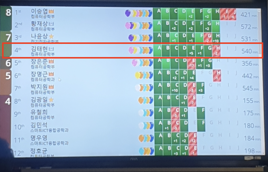 4등인데, 내 위에 한분이 휴학생이어서 비공식참가자였다.
