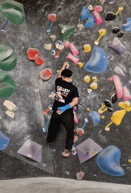 한팔클라이밍 또는 엄지 제외한 손가락으로 최대한 무리 안가게 볼더링하고 있는 내자신...