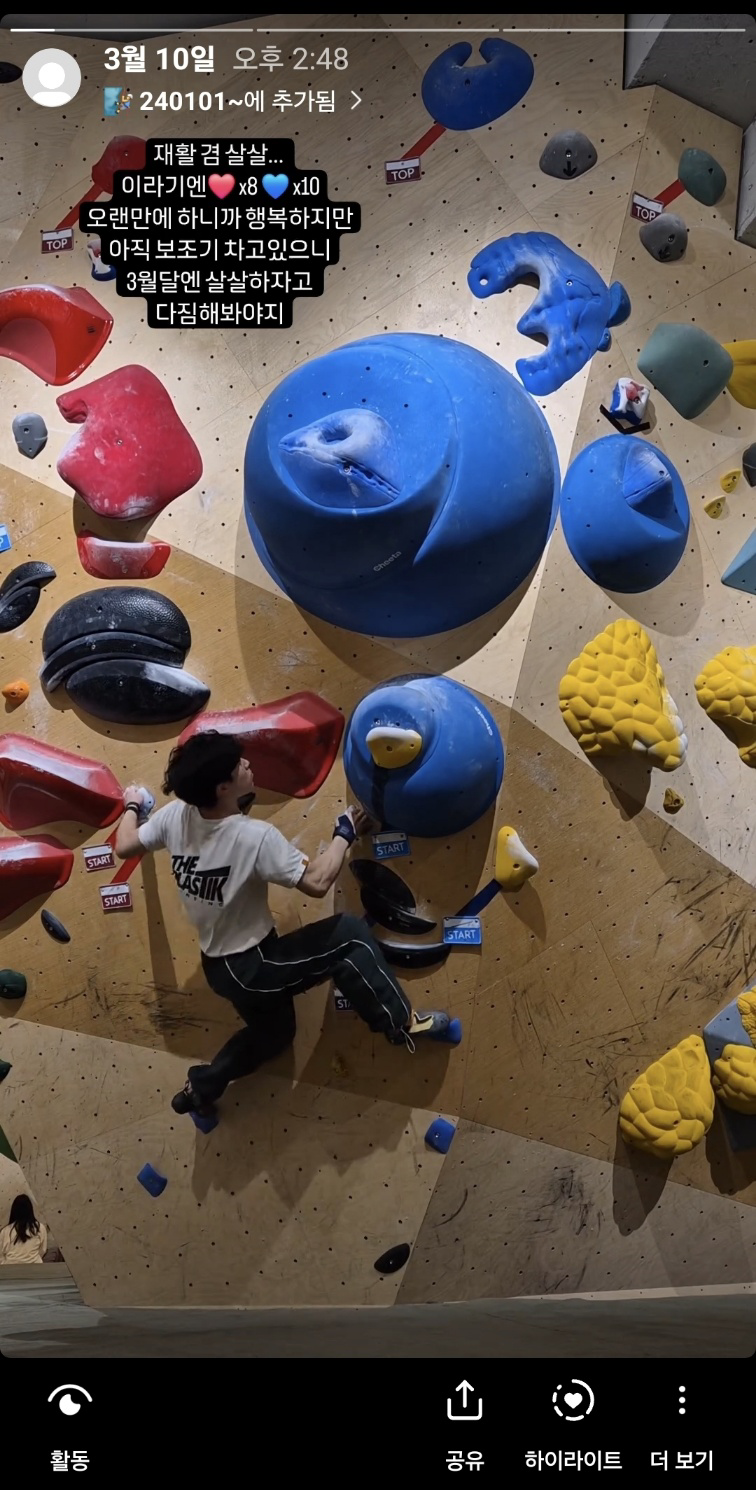 클라이밍을 했을 때 너무 재밌었어서... 아이러니하지만 빨리 낫고 싶다는 생각이 많이 들었다. (클라이밍을 가지 말았어야지! 아니면 간다 하더라도 빨강 난이도를 풀진 말았어야지!)